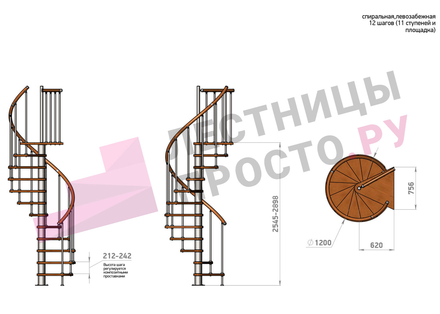 | Винтовая лестница Prosto Spiral White D120см, h275.7-313,9 см |