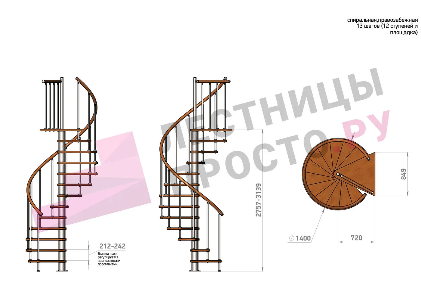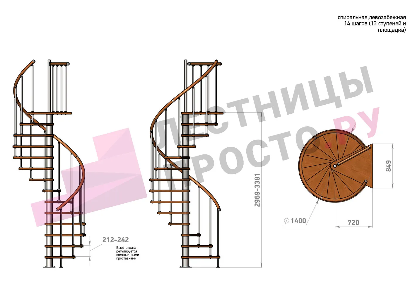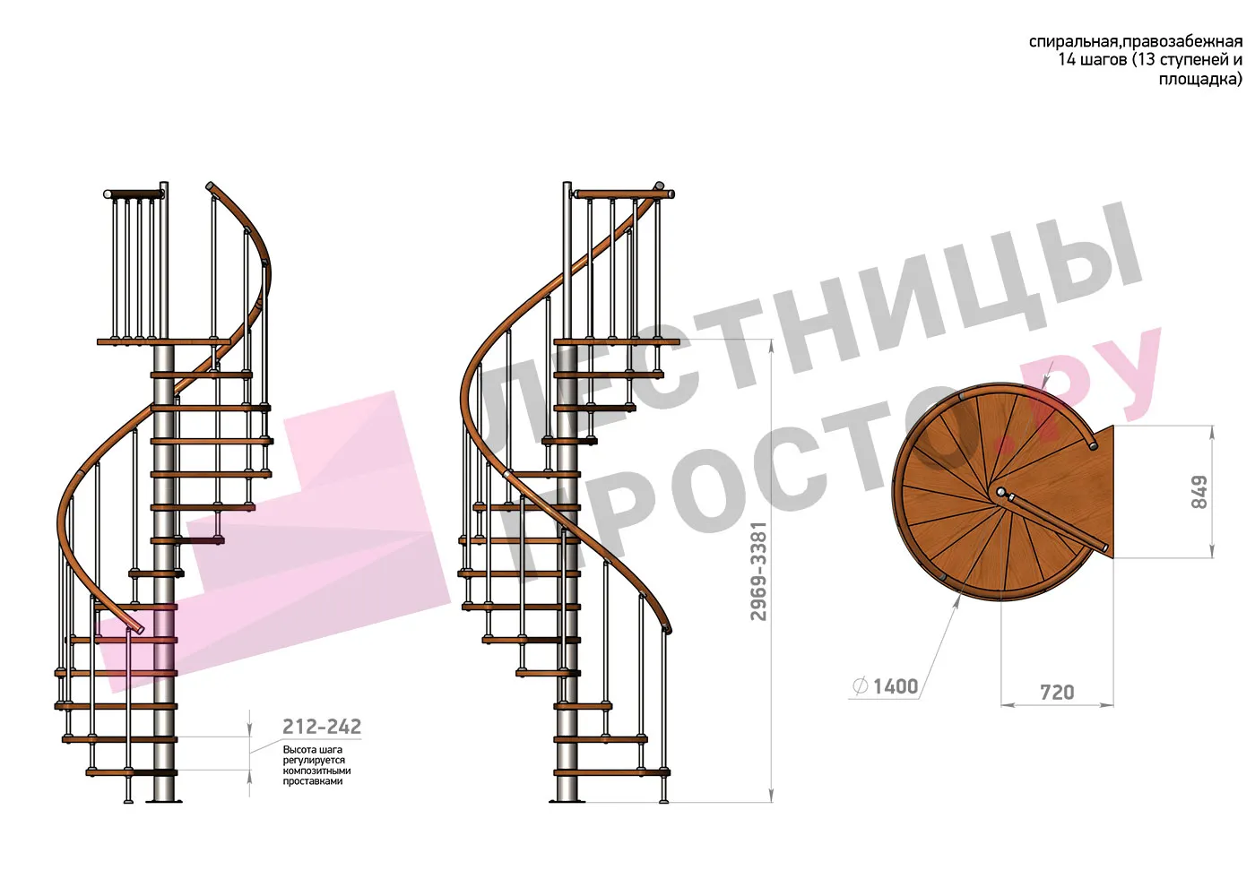 | Винтовая лестница Prosto Spiral White D140см, h296.9-338.1 см |