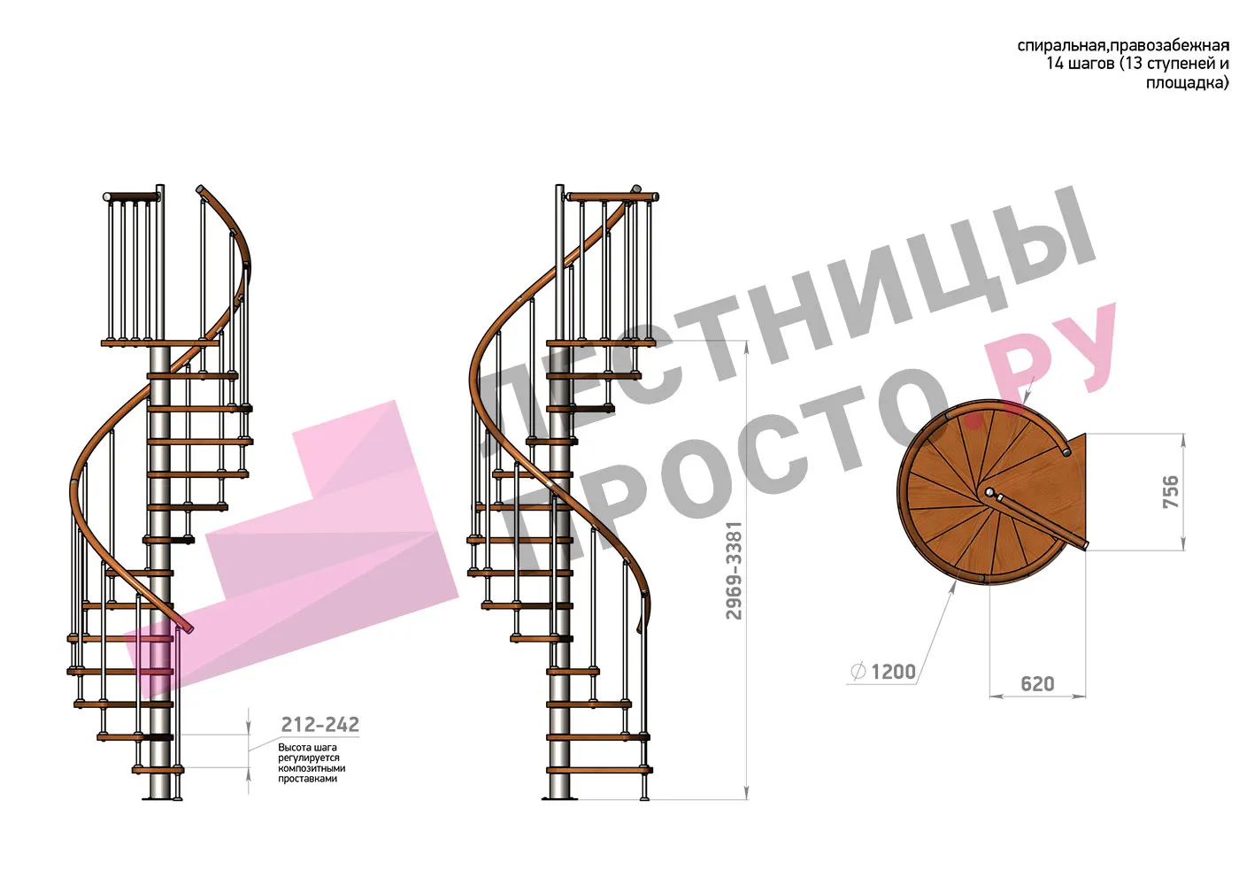 | Винтовая лестница Prosto Spiral White D140см, h254.5-289.8 см |
