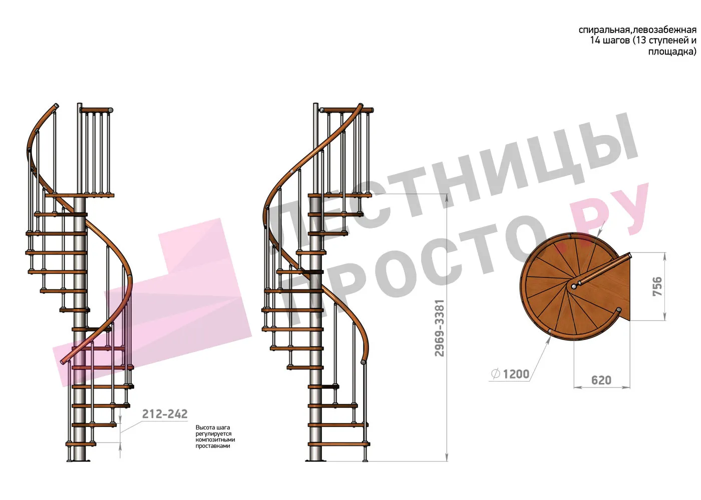 | Винтовая лестница Prosto Spiral White D140см, h318.2-362.3 см |