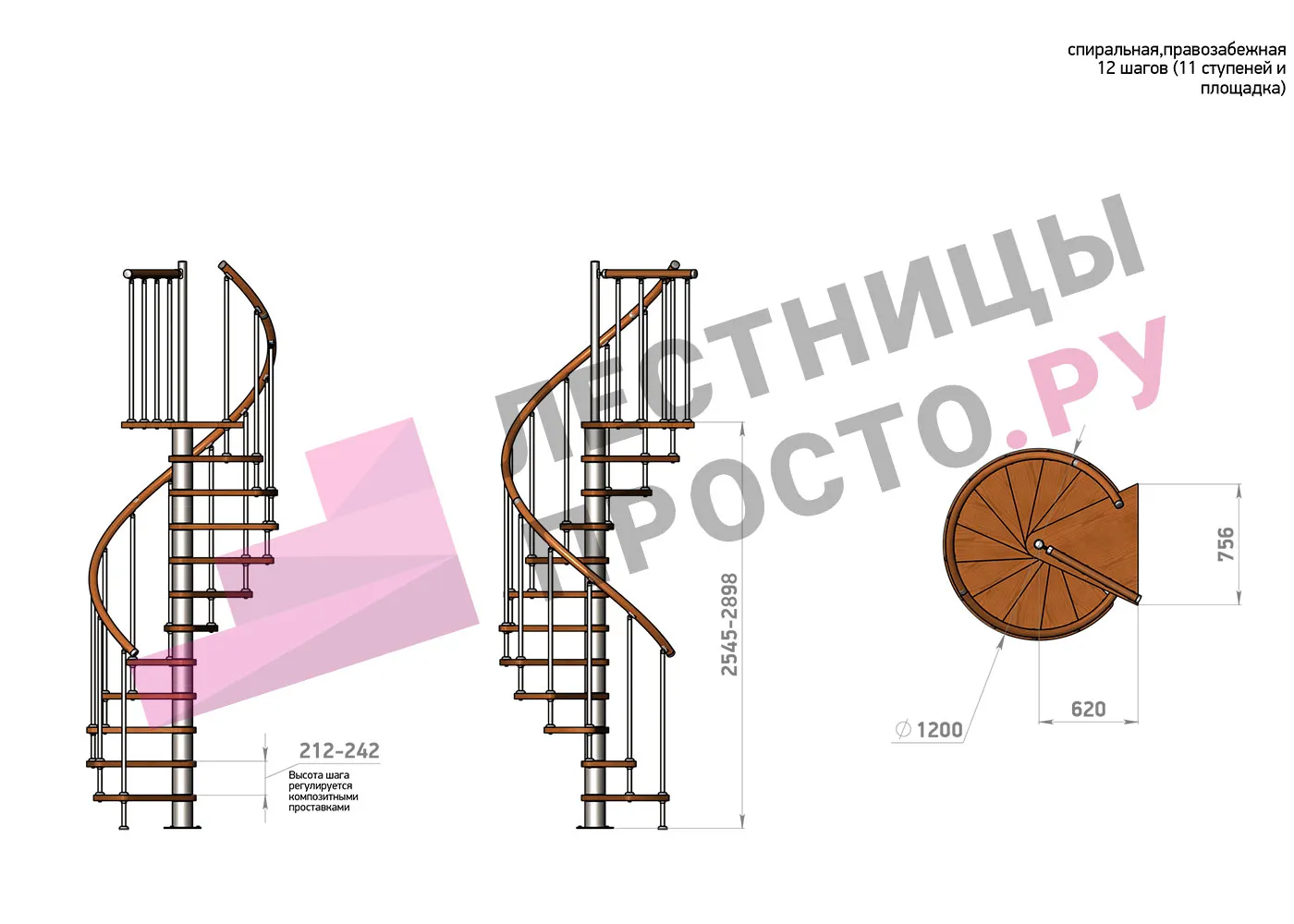 | Винтовая лестница Prosto Spiral White D120см, h318.2-362.3 см |