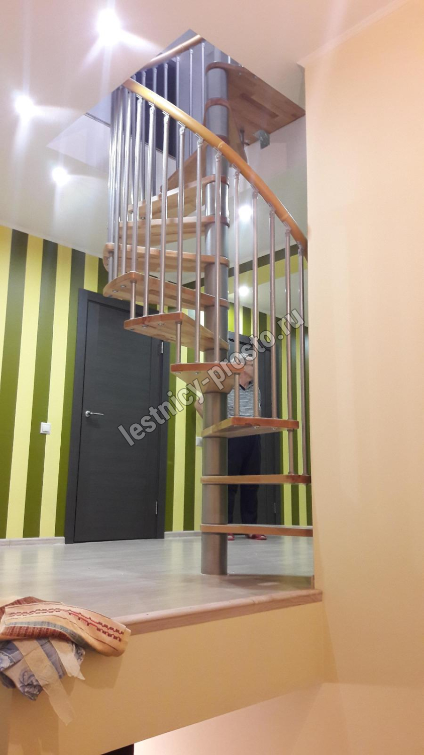 Винтовая лестница SPIRAL WOOD d160 см, серебро, лакированный бук