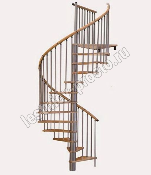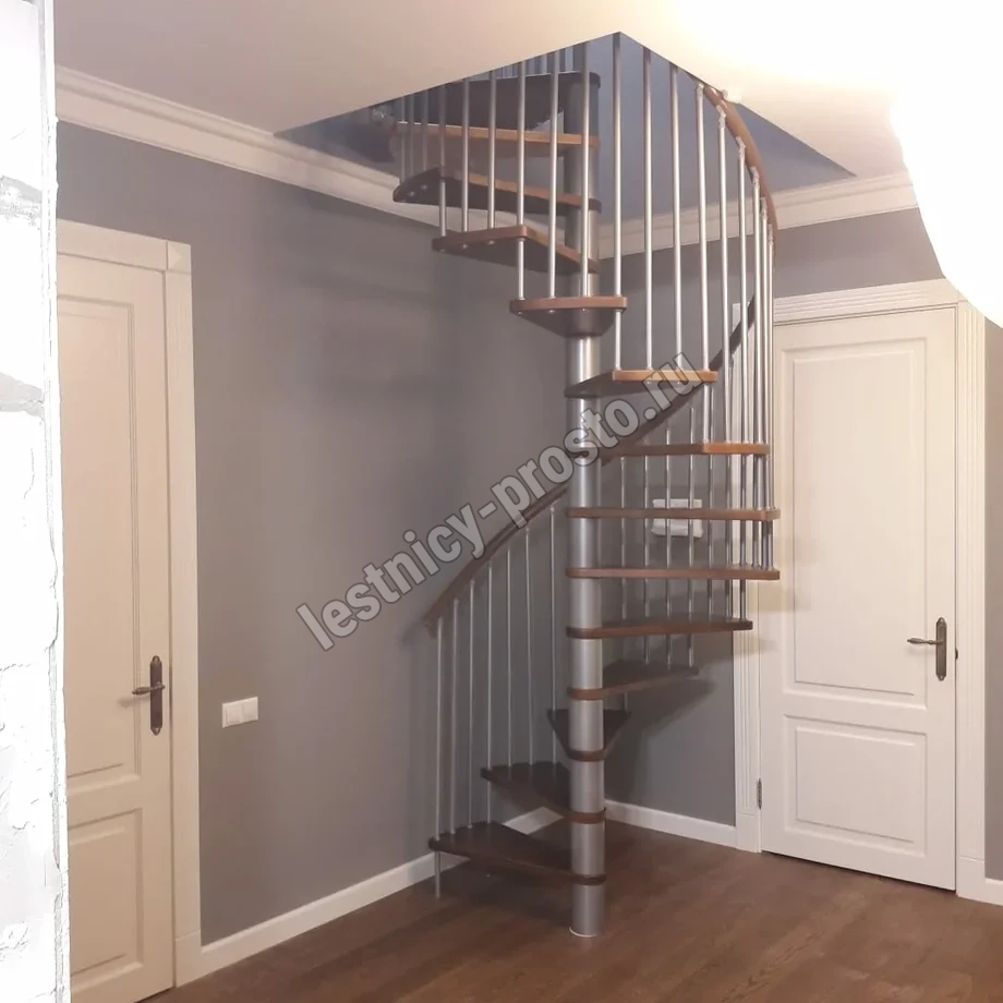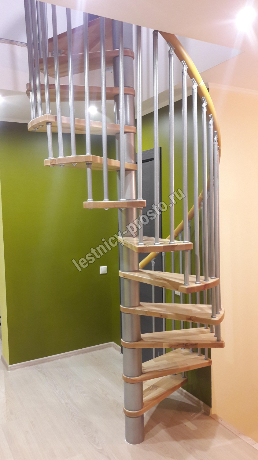Винтовая лестница SPIRAL WOOD d140 см, серебро, лакированный бук