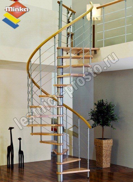 Винтовая лестница Venezia d120 см, серебро, бук лакированный