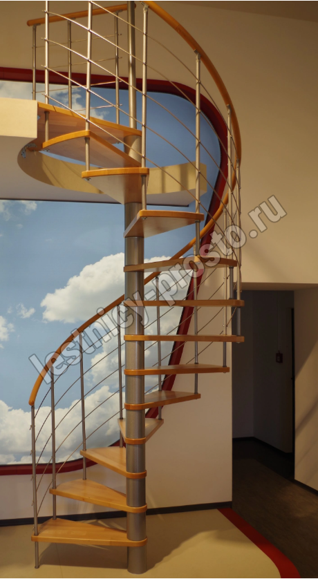 Винтовая лестница Venezia d140 см, серебро, бук лакированный